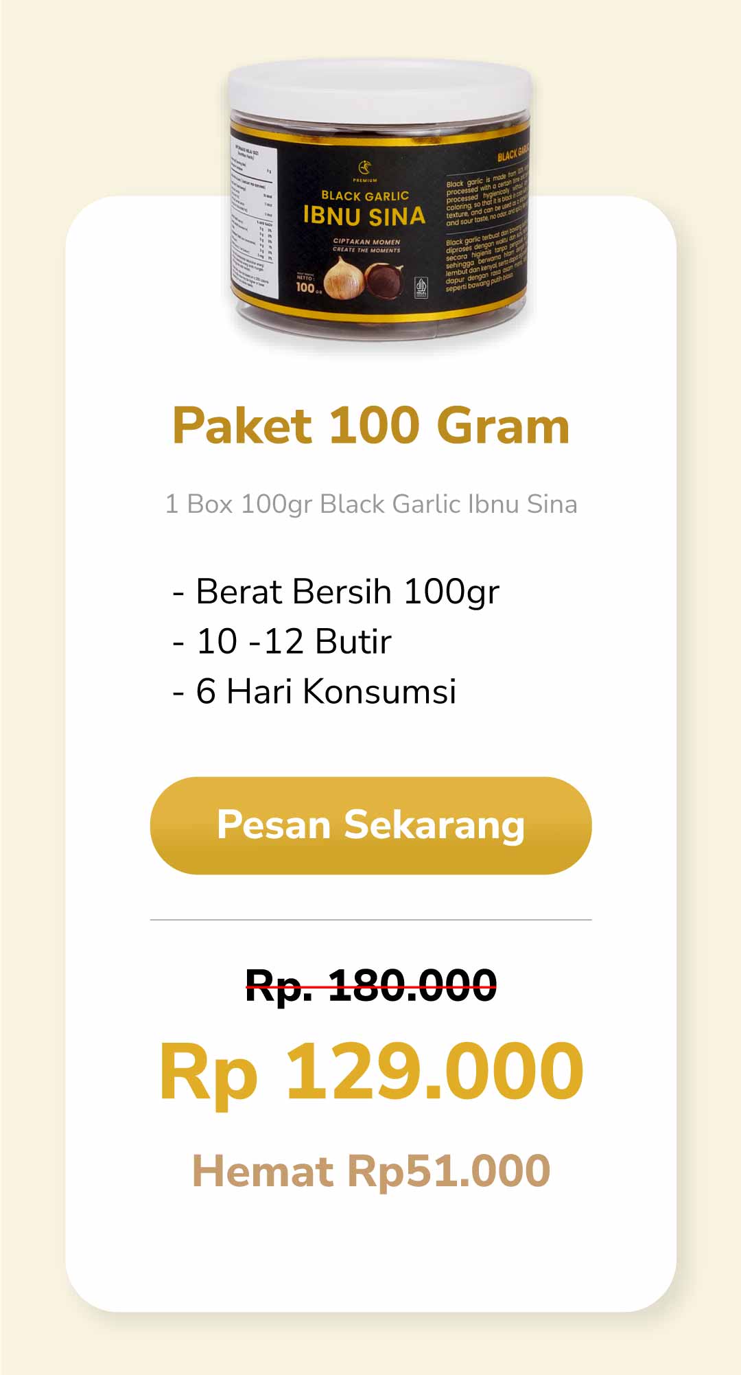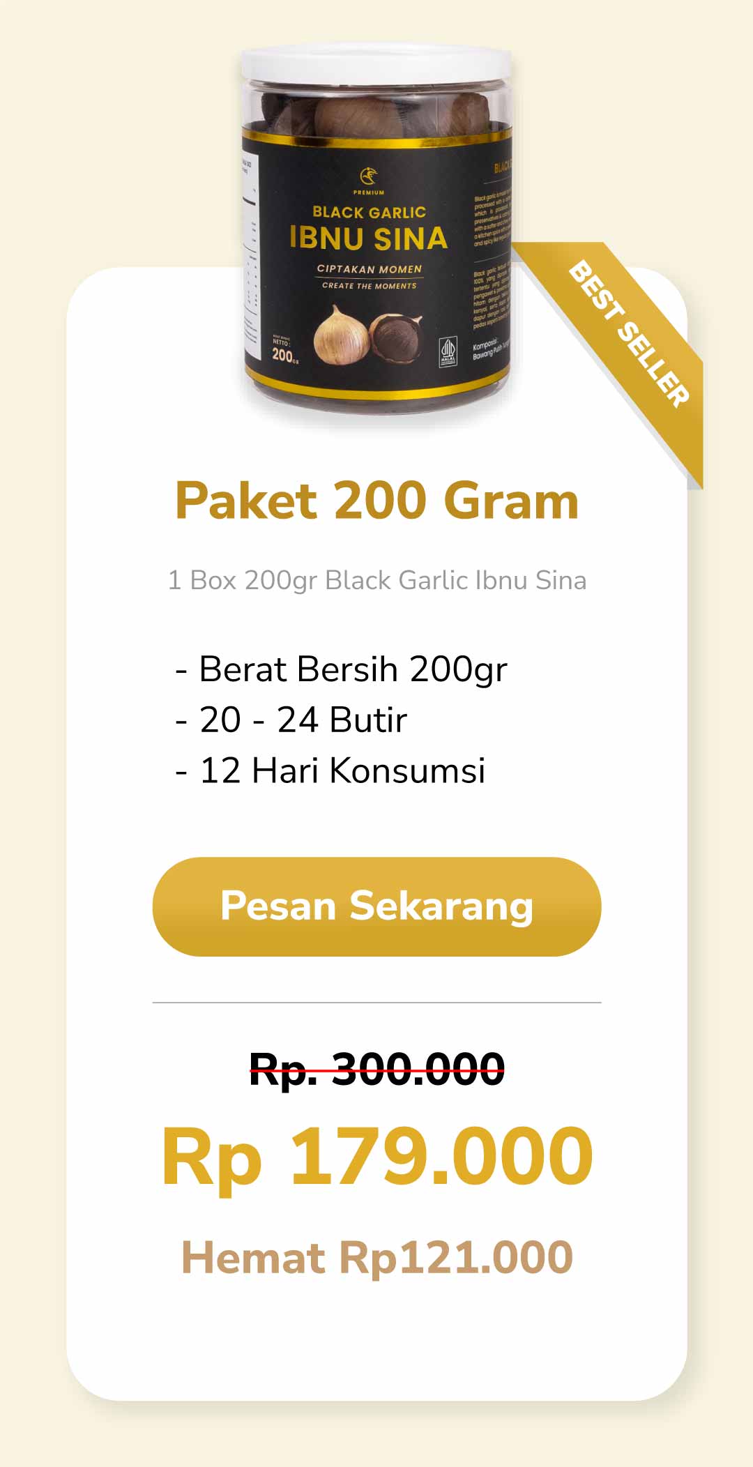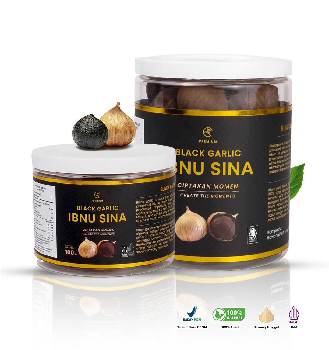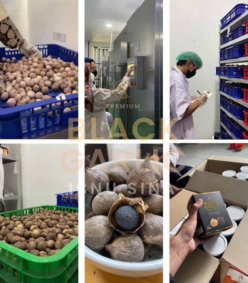 BLACK GARLIC IBNU SINA merupakan bawang putih tunggal yang difermentasi pada suhu dan jangka waktu tertentu dengan mesin khusus. Selama proses fermentasi tersebut bawang putih tunggal berubah warna menjadi hitam dengan tekstur yang lembut dan kenyal , Bau bawang putihnya tidak terasa lagi (Tidak Menyengat) serta rasa yang lebih manis, juga memiliki kandungan antioksidan tinggi yang baik untuk darah tinggi.