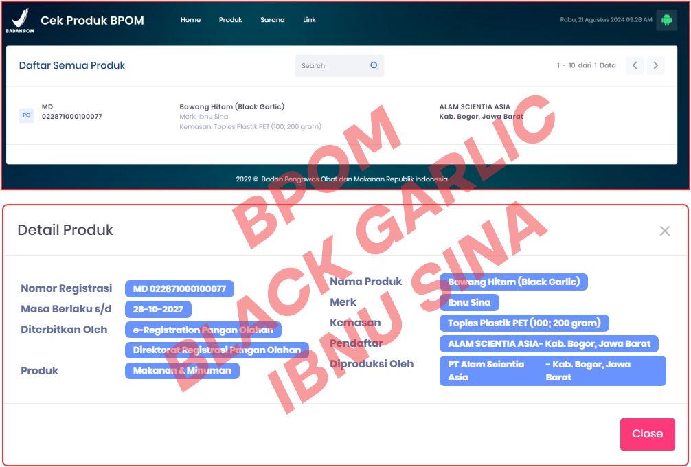 NO BPOM : MD 022871000100077